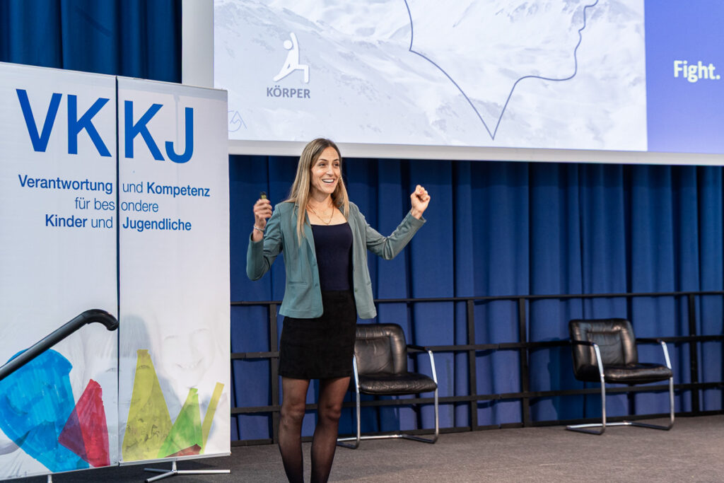 Einen weiteren Höhepunkt des Festaktes bildete die Keynote von Extremsportlerin und Motivationsrednerin Gela Allmann. Nach einem Sturz bei Fotoaufnahmen in Island schlug sie 800 Meter in die Tiefe und kämpfte sich trotz schwerster Verletzungen wieder zurück. Mit ihrer beeindruckenden Lebensgeschichte und ihrem Vortrag zu mentaler Stärke, positivem Mindset und Motivation gab sie den Teilnehmerinnen und Teilnehmern wertvolle Impulse, wie sich auch in schwierigen Situationen Zuversicht und Durchhaltevermögen bewahren lassen. Ihre authentische Art und persönliche Erfahrung machten die Rede zu einem inspirierenden Beitrag des Jubiläumsfestes.
