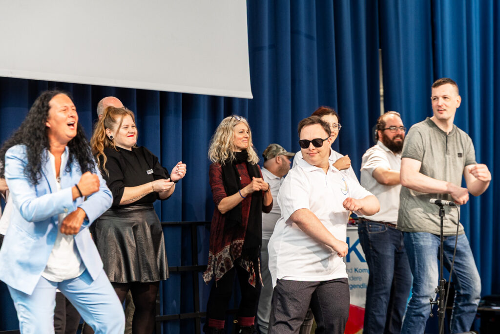 Für den krönenden Abschluss sorgten die Klientinnen und Klienten des Tageszentrum Kreativ gemeinsam mit ihren Betreuerinnen und Betreuern in einem musikalischen Showact. Bekannte Hits wurden in eigenen Textversionen interpretiert, dazu gab es darstellerische Einlagen, die alle Anwesenden begeisterten.