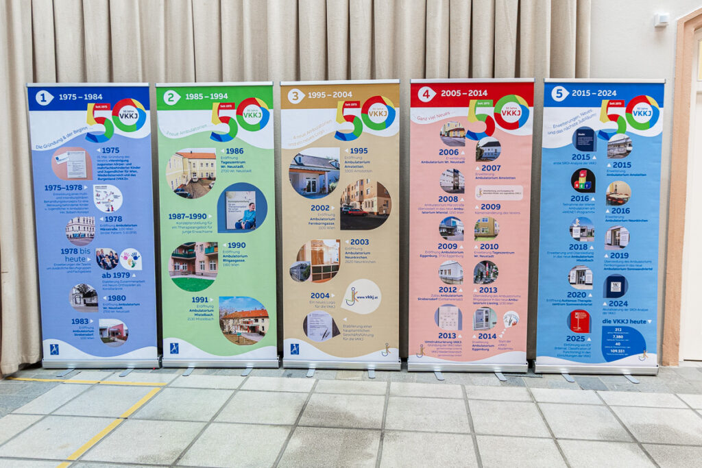 Obmann Stefan Stadler blickte in seiner Festrede mit sichtbarem Stolz auf fünf Jahrzehnte VKKJ zurück. Entstanden aus einer Initiative betroffener Eltern nahm der Verein eine beispiellose Entwicklung. Heute werden in neun Ambulatorien in Wien und Niederösterreich und einem Autismus-Kompetenzzentrum in Wien Favoriten jährlich rund 7.400 Kinder, Jugendliche und junge Erwachsene mit Körper- und Mehrfach-Behinderungen medizinisch-therapeutisch versorgt. Ergänzt wird das Angebot durch das Tageszentrum Kreativ für Erwachsene in Wiener Neustadt.