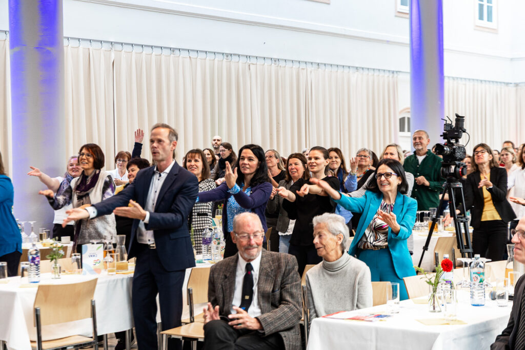 Einen weiteren Höhepunkt des Festaktes bildete die Keynote von Extremsportlerin und Motivationsrednerin Gela Allmann. Nach einem Sturz bei Fotoaufnahmen in Island schlug sie 800 Meter in die Tiefe und kämpfte sich trotz schwerster Verletzungen wieder zurück. Mit ihrer beeindruckenden Lebensgeschichte und ihrem Vortrag zu mentaler Stärke, positivem Mindset und Motivation gab sie den Teilnehmerinnen und Teilnehmern wertvolle Impulse, wie sich auch in schwierigen Situationen Zuversicht und Durchhaltevermögen bewahren lassen. Ihre authentische Art und persönliche Erfahrung machten die Rede zu einem inspirierenden Beitrag des Jubiläumsfestes.